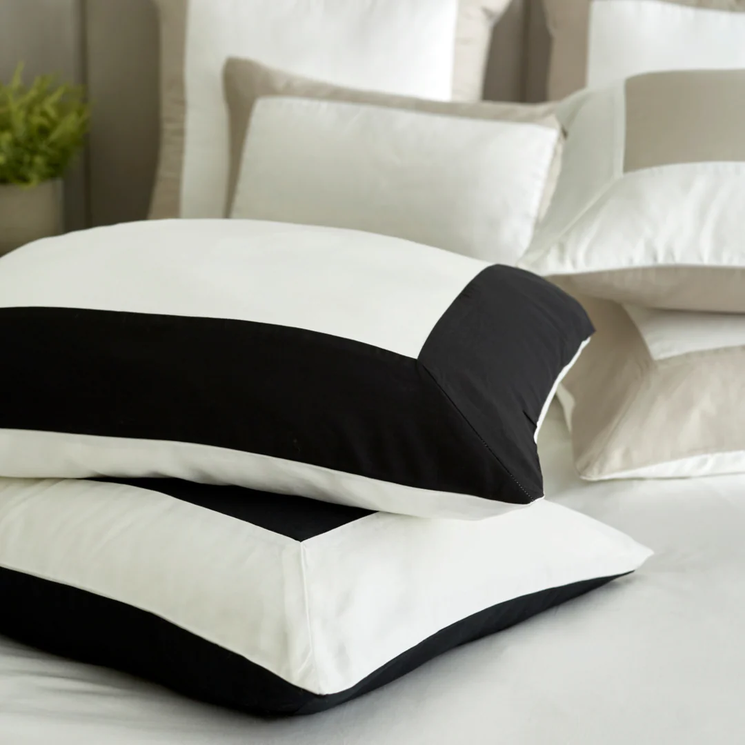 The DH Andre Linen Set from Domani Home delivers timeless sophistication with a modern edge, featuring crisp color-blocking and a reversible design that allows effortless updates to your bedroom aesthetic. Crafted from 100% cotton sateen with a 300 thread count, this four-piece set offers a smooth, lustrous feel that enhances everyday luxury. The coordinated reverse pattern on the duvet and shams adds styling versatility, while the soft taupe sheet provides a warm, neutral foundation. Designed with a sleek zipper closure and OEKO-TEX® certification for safety and quality, this set brings polished elegance and comfort to your home.