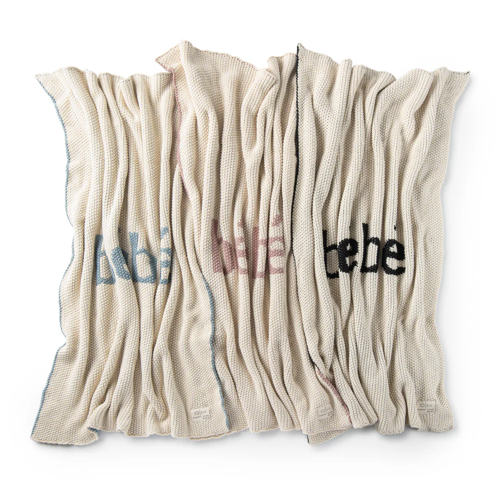 Featuring the word bebe in the center. This soft & chunky reversible blanket is a trendy favorite.