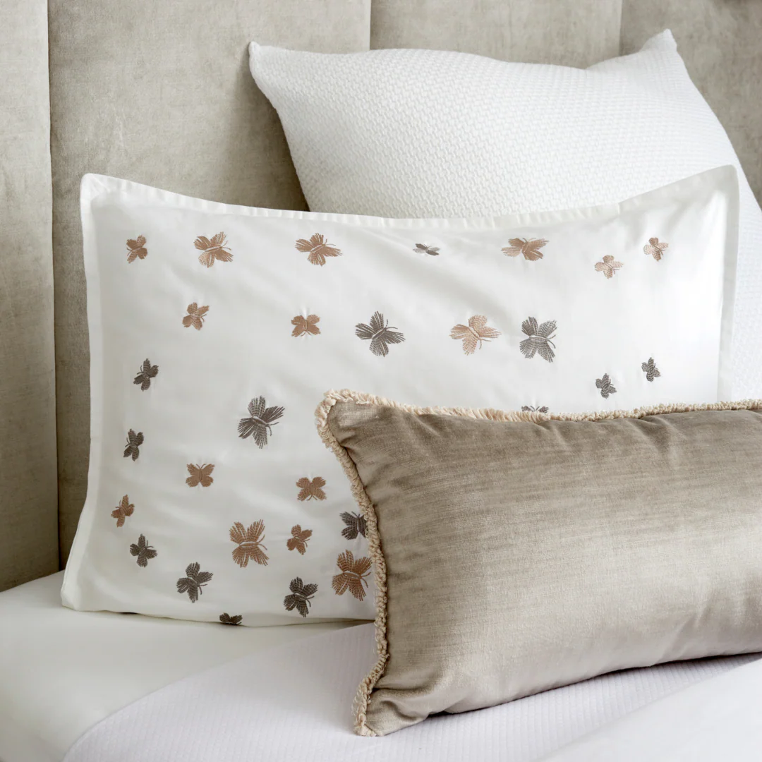 The Grace Linen Set from Domani Home brings a touch of whimsy and sophistication to your bedroom with its delicate cascade of embroidered butterflies. Crafted from 100% cotton sateen with a silky 300-thread count finish, this four-piece set offers a luxuriously soft feel that’s as inviting as it is elegant. The refined embroidery adds texture and charm without overpowering the clean, airy design. Finished with a sleek zipper closure and OEKO-TEX® certified for peace of mind, the Grace set is perfect for creating a serene, enchanting space that feels both graceful and grounded.